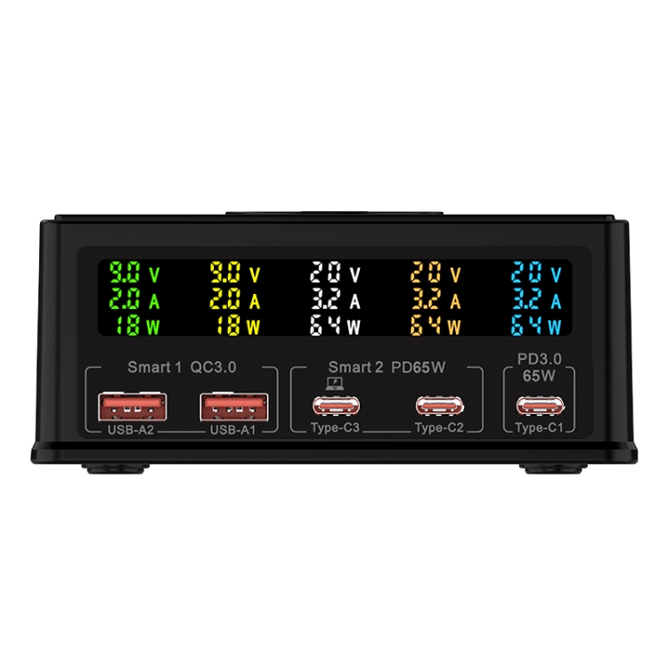 868H 6 in 1 160W 3 PD Type-C + 2 QC3.0 USB Ports Multi Ports Charger