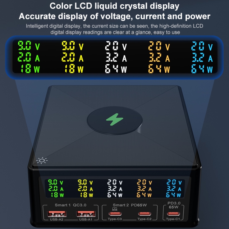 3. Including 2 x QC3.0 US interfaces, 3 x PD Type-C interfaces and a QI standard wireless charging area