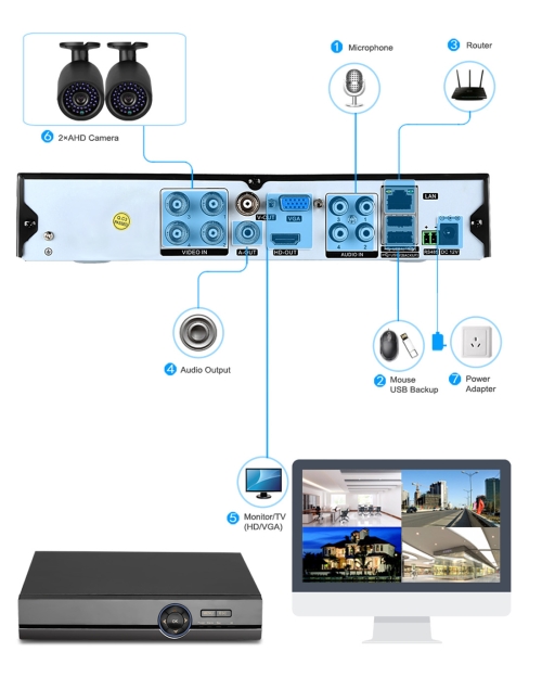 1. Support 4CH 960P/720P 1HDD AHD DVR