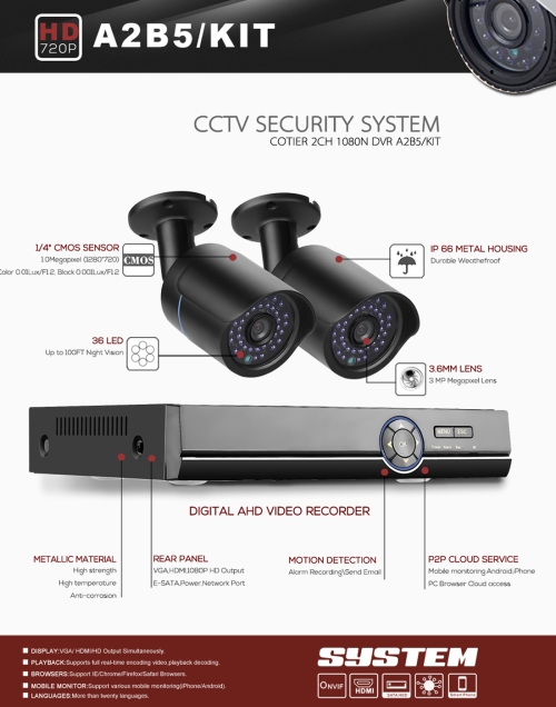 2. Support 2pcs 1MP AHD Camera(36pcs 5mm IR LED,IR distance 20M)