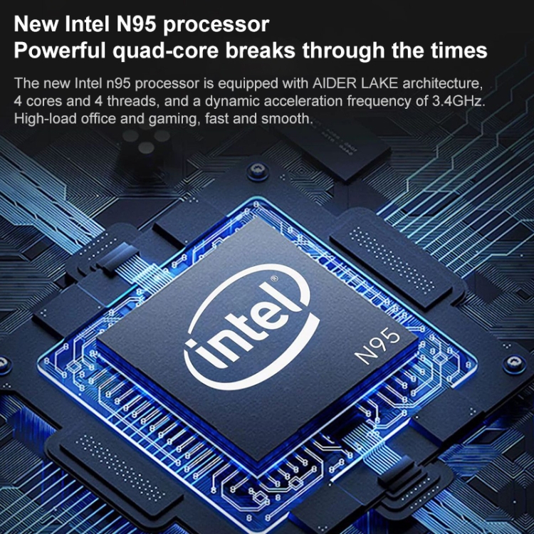 4. CPU: Intel Processor N95, 4 core 4 threads, up to 3.4GHz
