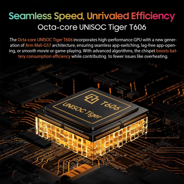 4. CPU: UNISOC Tiger T606 octa core (2 x A75 1.6GHz + 6 x A55 1.6GHz)