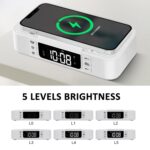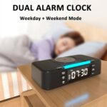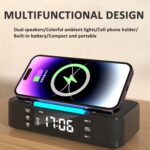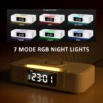 4. The top of the alarm clock is designed with LED RGB lights, which can be adjusted to 7 color modes. Perfect for placing on a bedside table in the bedroom as an ambient light.