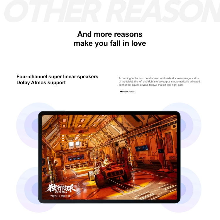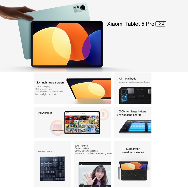 3. 12.4-inch 2.5K UHD large screen, 244PPI, 120Hz high refresh rate, 500nit brightness, support Dolby Vision, ambient color temperature sensing, Rheinland hardware low blue light certification.
