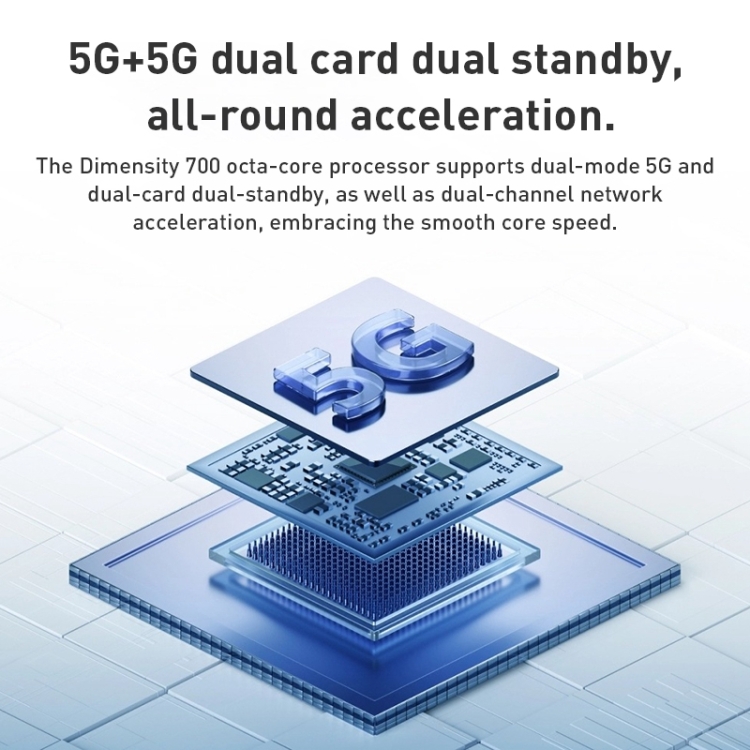 2. Dimensity 700 octa core 7nm, 64bit, 2.2 GHz x 2 + 2.0 GHz x 6 processor, high performance, run fast and operate smoothly.