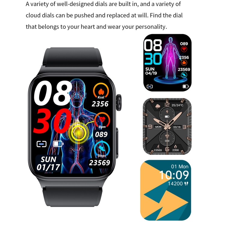 12. Supports real-time ECG analysis with chest stickers, ECG belt monitoring, non-invasive blood sugar, heart rate monitoring, blood pressure monitoring, blood oxygen monitoring, and multi-sport modes.