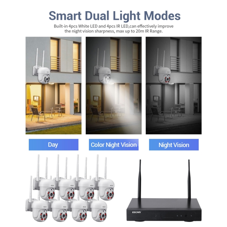 ESCAM WNK718 HD 3.0 Million Pixels 8-channel Wireless + 8IPC Wireless NVR Security System, UK Plug