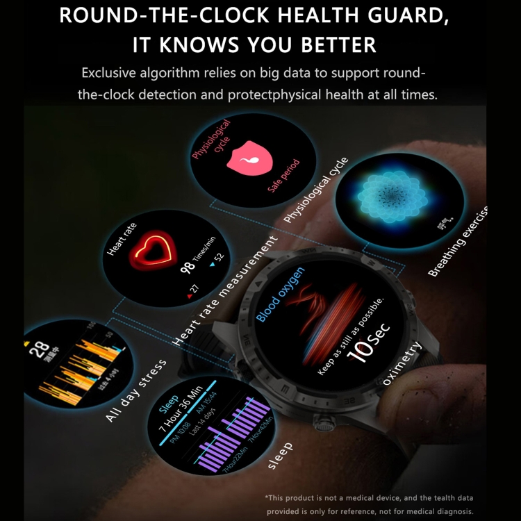 4. Display: 1.6-inch full-circle full-color full-view TFT; resolution: 400*400;