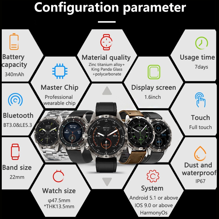 2. 1.6-inch ultra-clear large screen, ultra-narrow bezel, the best screen choice for the round screen style, and the ultimate look and feel level. King panda glass, high strength, wear-resistant and scratch-resistant.