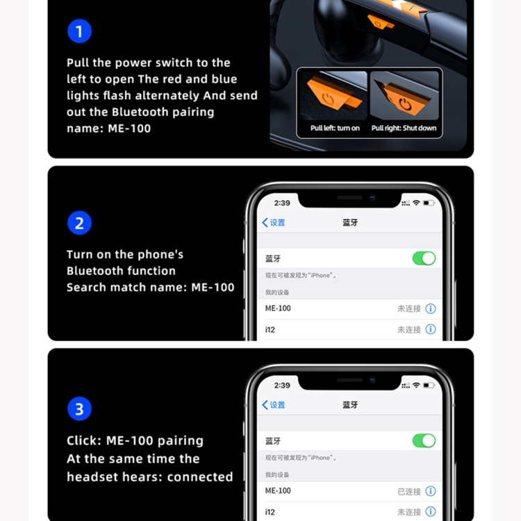 8. Voice control, Apple Android universal voice assistant, two earphones can form a pair of Bluetooth earphone with TWS on-ear function