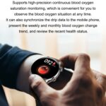 12. Support Bluetooth calling, voice control, always-on screen, Alipay offline payment, NFC, password unlocking, female physiological cycle, custom dial, weather forecast, music control, pedometer, heart rate, sleep, sedentary, mileage, blood Oxygen, blood pressure, search, calories, message push and other functions.