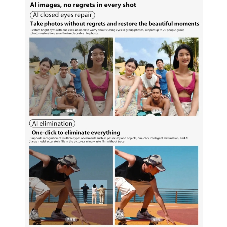 3. Function Support: Rear: Professional, video, photo, portrait, night scene, high pixel, panorama, movie, slow motion, time-lapse photography, multi-scene video, cute photo, AI ID photo, document mode; Front Camera: photo, video, night scene, portrait, panorama, time-lapse photography, multi-scene video, cute shot, AI ID photo