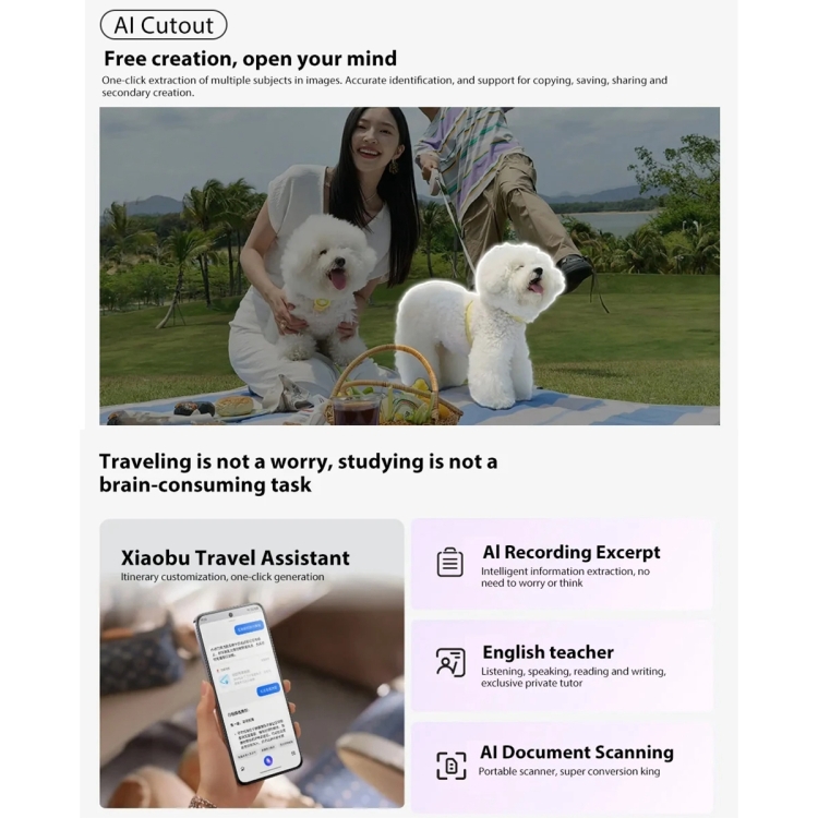 3. Function Support: Rear: Professional, video, photo, portrait, night scene, high pixel, panorama, movie, slow motion, time-lapse photography, multi-scene video, cute photo, AI ID photo, document mode; Front Camera: photo, video, night scene, portrait, panorama, time-lapse photography, multi-scene video, cute shot, AI ID photo