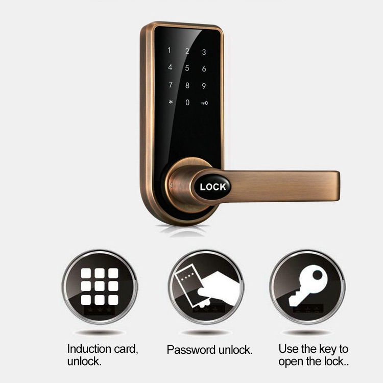 1. This password sensor door lock adopts capacitive touch buttons and proximity cards. It has stable performance, powerful function and flexible and convenient use.