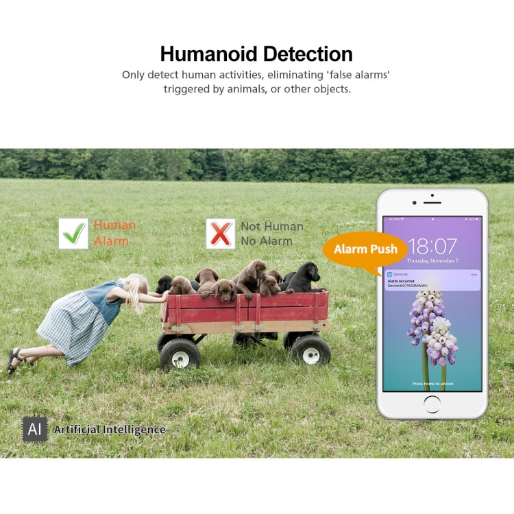 8. Alarm method: motion detection alarm, mobile phone push alarm