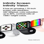 1. Highlights Functions: Support Bluetooth calling, Body temperature test, Heart Rate, BP & ECG、Steps, Fruit wath 5 Size, 44mm changeable band, Smart Beehive style menu, The nine box menu, IP68 waterproof
