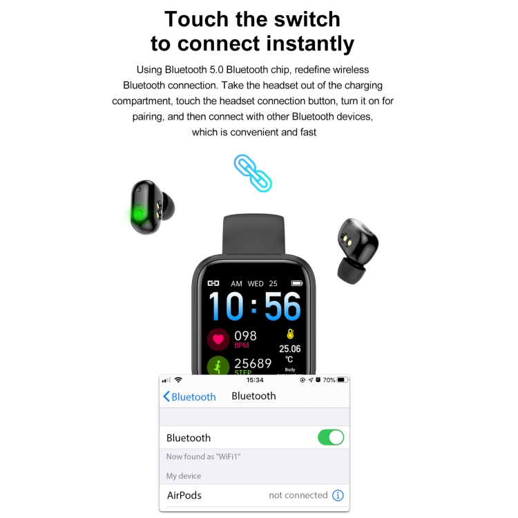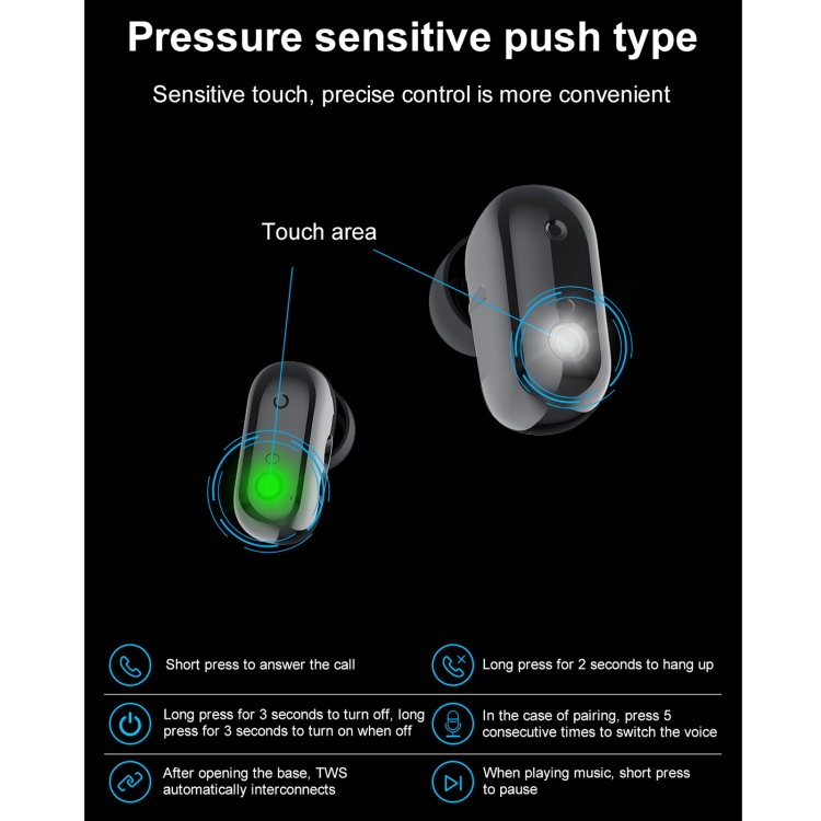 Charging box function: the main body can charge the pair of ears for 2-3 cycles; standby time: 8-12 days, music time: 3.5 hours; charging method: magnetic charging, charging time: 1-2 hours