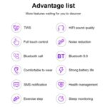 1. Support Bluetooth calling, full touch, heart rate, shake to take pictures, call reminder/reject, information storage, multi-sport mode, weather