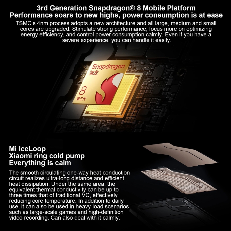 1. Processor: Qualcomm 3nd generation Snapdragon 8 TSMC 4nm octa-core processor, up to 3.3GHz